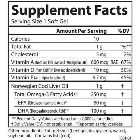 Carlson Cod Liver Oil 1000mg 250 Softgels