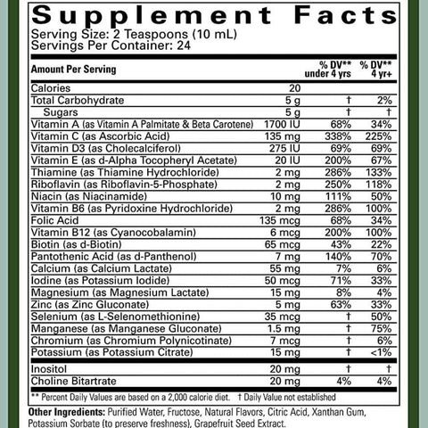 ChildLife Multi Vitamin & Mineral formula provides essential vitamins with minerals and trace elements. As the nutritional value of the food we eat decreases and the increase in environmental pollution and toxic burden creates an increased need for these nutrients—the vitamins and minerals that protect, nourish and sustain a child’s natural, healthy development are extremely necessary.