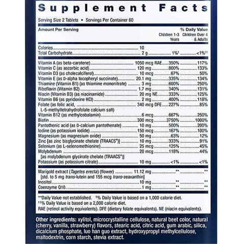 - For children 4-8 years of age chew two (2) tablets daily with food, or as recommended by a healthcare practitioner.