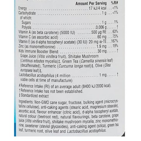 Animal Parade Kids Immune Booster Chewable Tablets supply powerful levels of the immune-fortifying vitamins A, C and E, as well as defense-boosting zinc. The formula includes a herbal blend, which features green tea and olive leaf, offers further nutritional support for a healthy immune system, while acidophilus helps promote a balanced digestive environment and optimal nutrient absorption.
