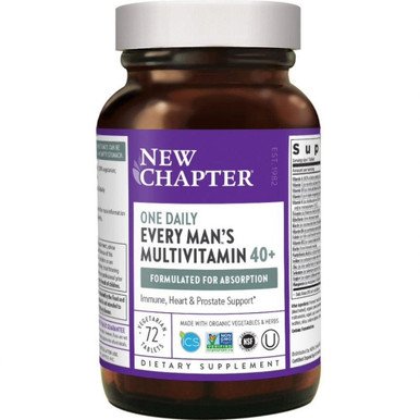 New Chapter has designed a multi-vitamin specifically for men over the age of 40 to meet the nutrient needs for maintaining optimal health. New Chapter’s formulation team takes exacting care with each nutrient and herbal blend in all of our targeted daily multi-vitamins to benefit the specific needs of the individual. New Chapter multivitamins are also Non-GMO Project verified and made with organic fruits and vegetables.