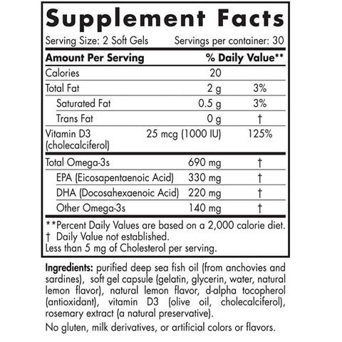 Omega-3D offers combined support for healthy heart and brain function, bones, mood, and immunity.