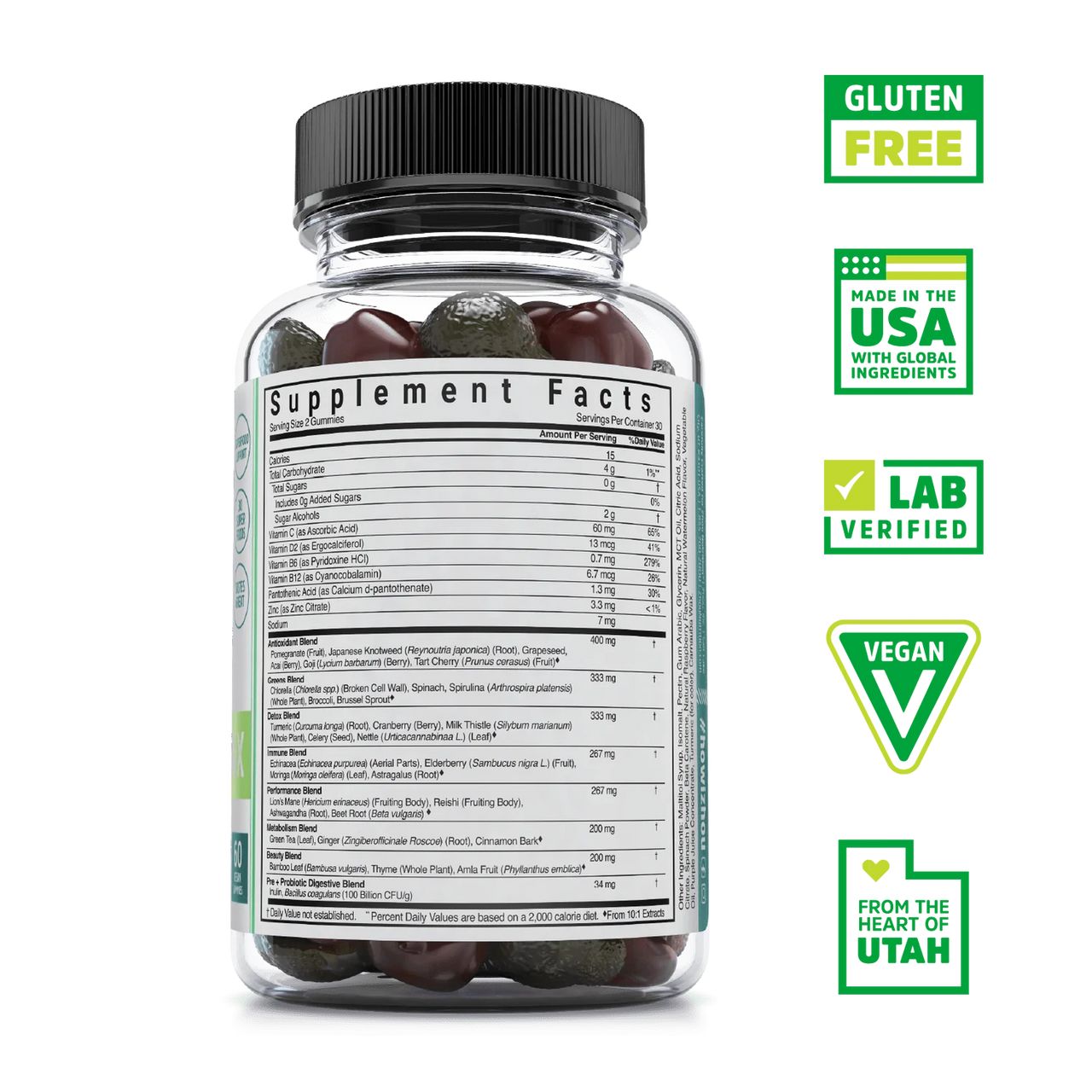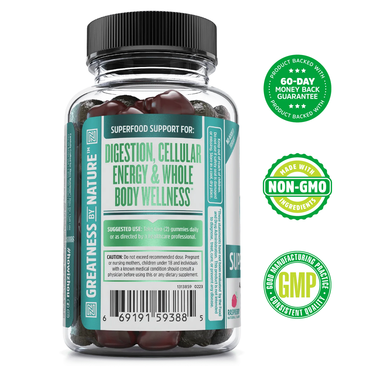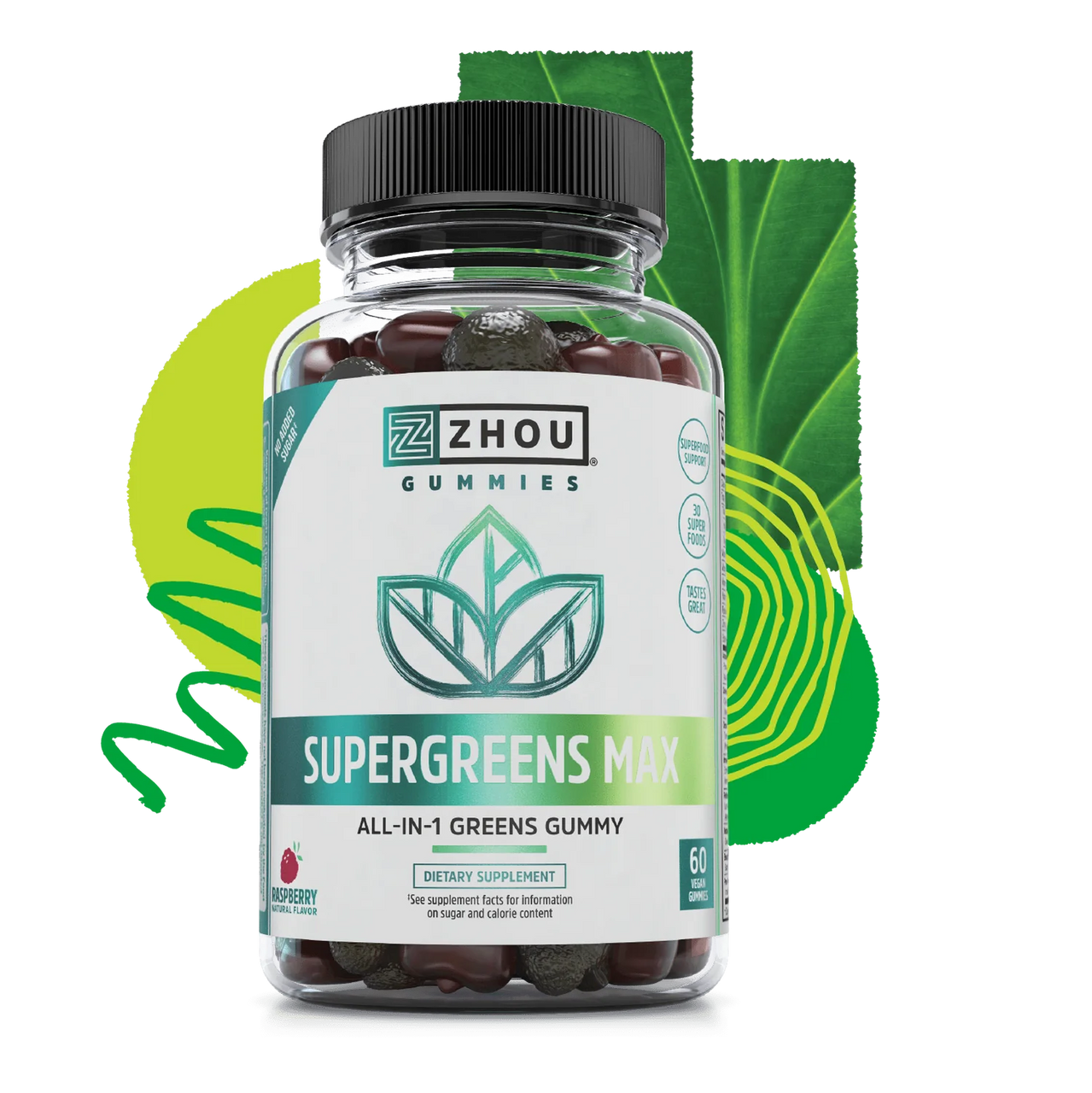 ZHOU Supergreens Max Raspberry 60 Vegan Gummies